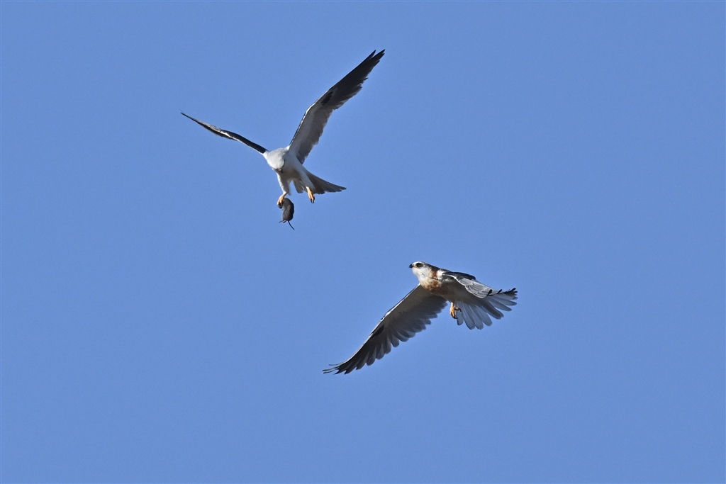 親鳥が野ネズミ持ってます