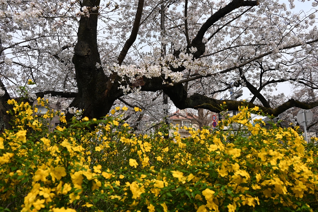 地上の花と桜のコラボ!?