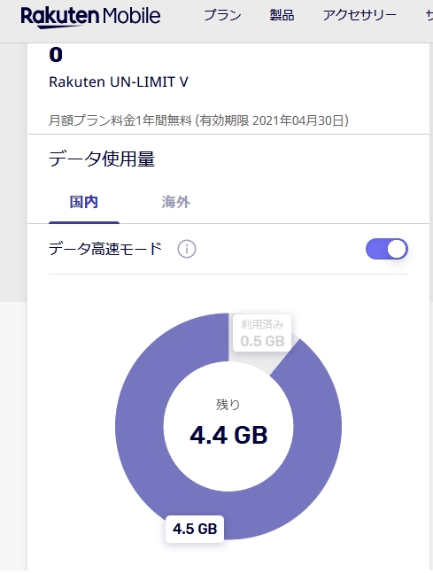 楽天モバイル月間使用量