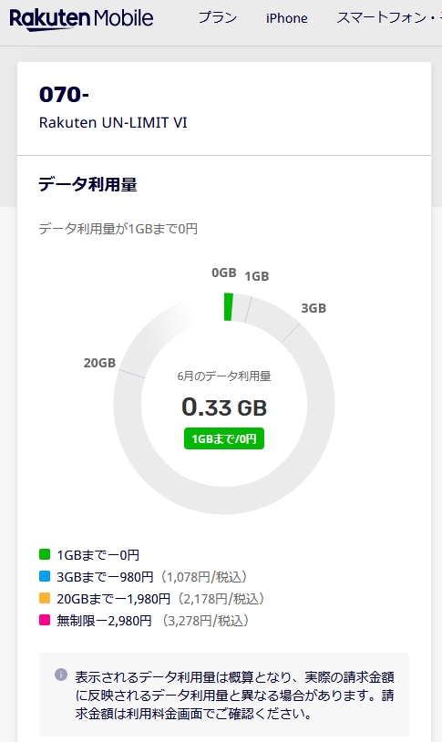 楽天モバイルパケット消費量