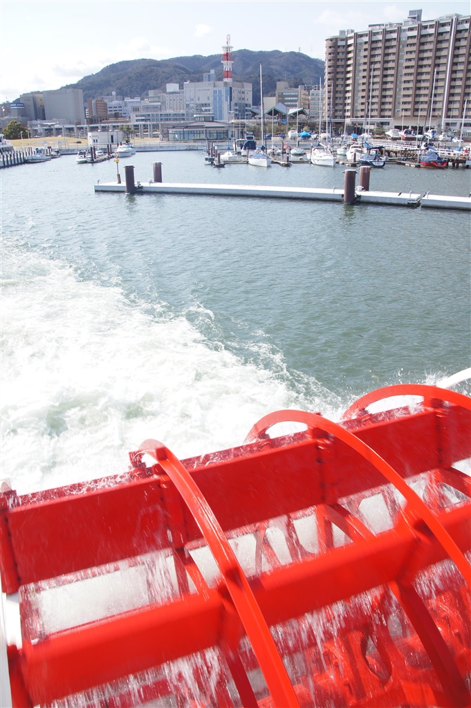 ミシガンは船後方のパドルを回転させて航行する外輪船です。