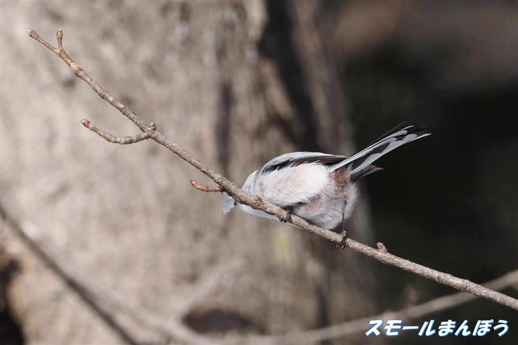 樹液の氷柱を食べ始めたシマエナガ