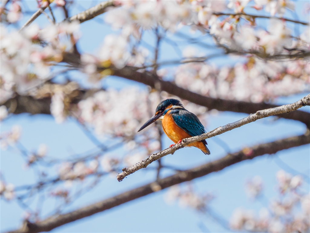 桜咲く枝から獲物を探る