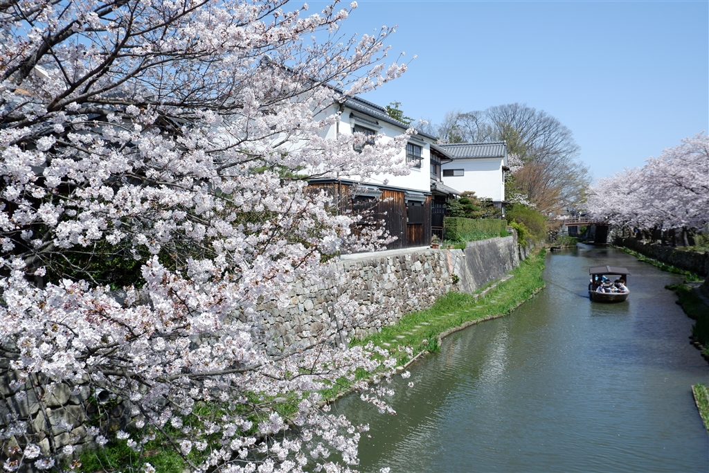 八幡堀の桜と渡船。