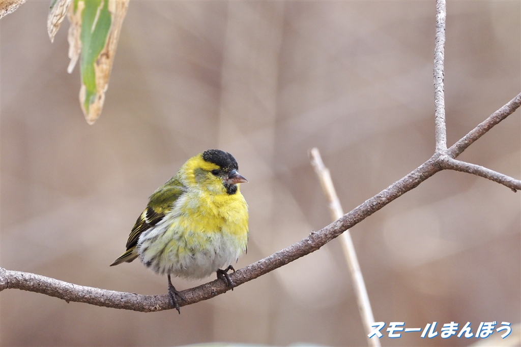 毛玉になっているマヒワのオス