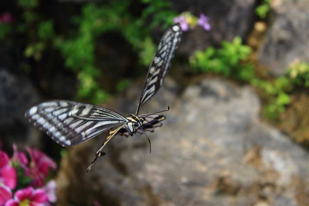アゲハチョウが密を求めて飛んでいる