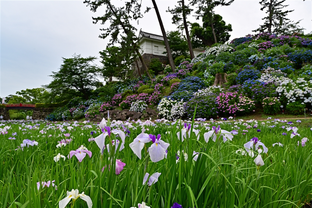 小田原城 花菖蒲と紫陽花を入れて