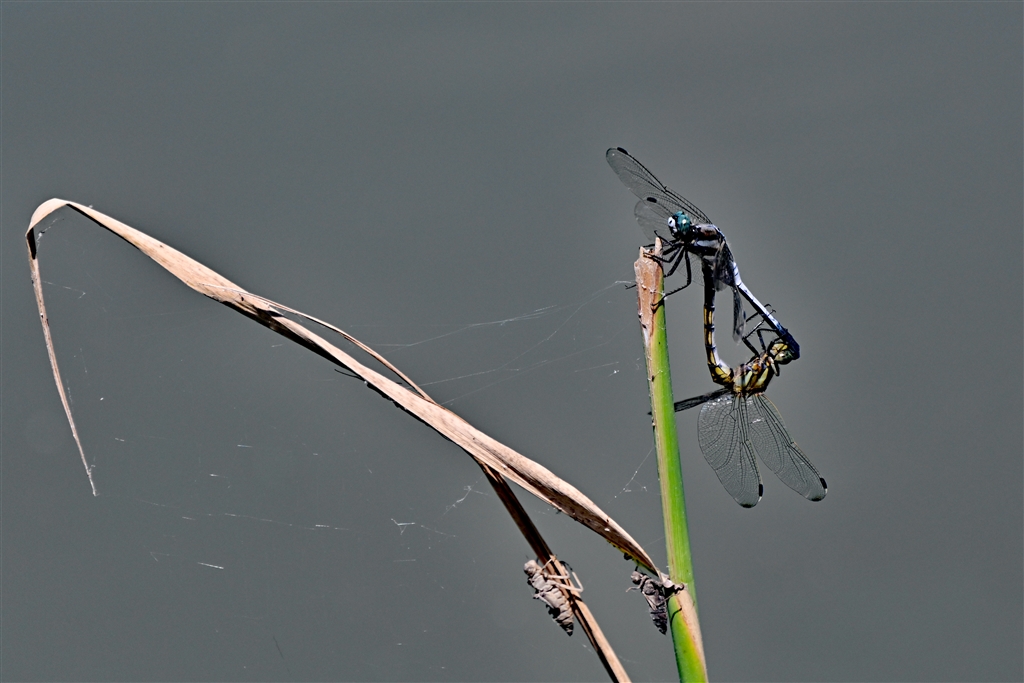 葦にヤゴの抜け殻が