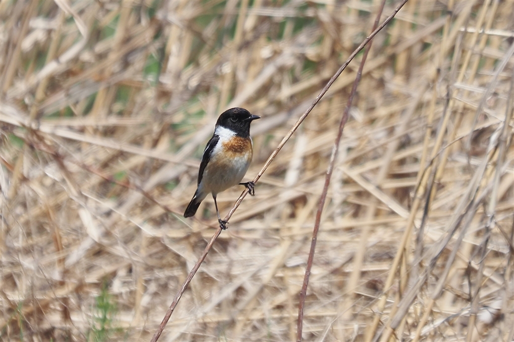 遊水池で、ノビタキ♂