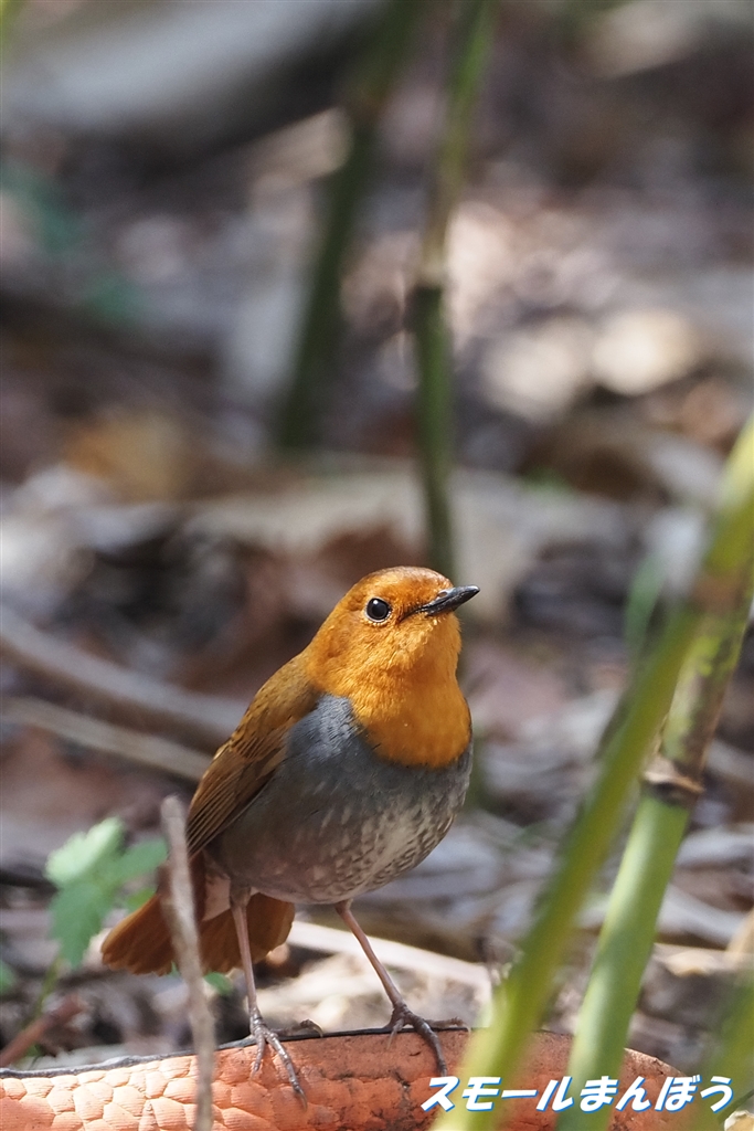 車に驚いて移動したコマドリ