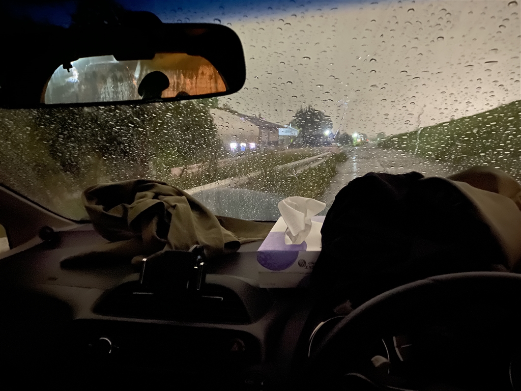 番外編:豪雨で走れず車内でションボリ...