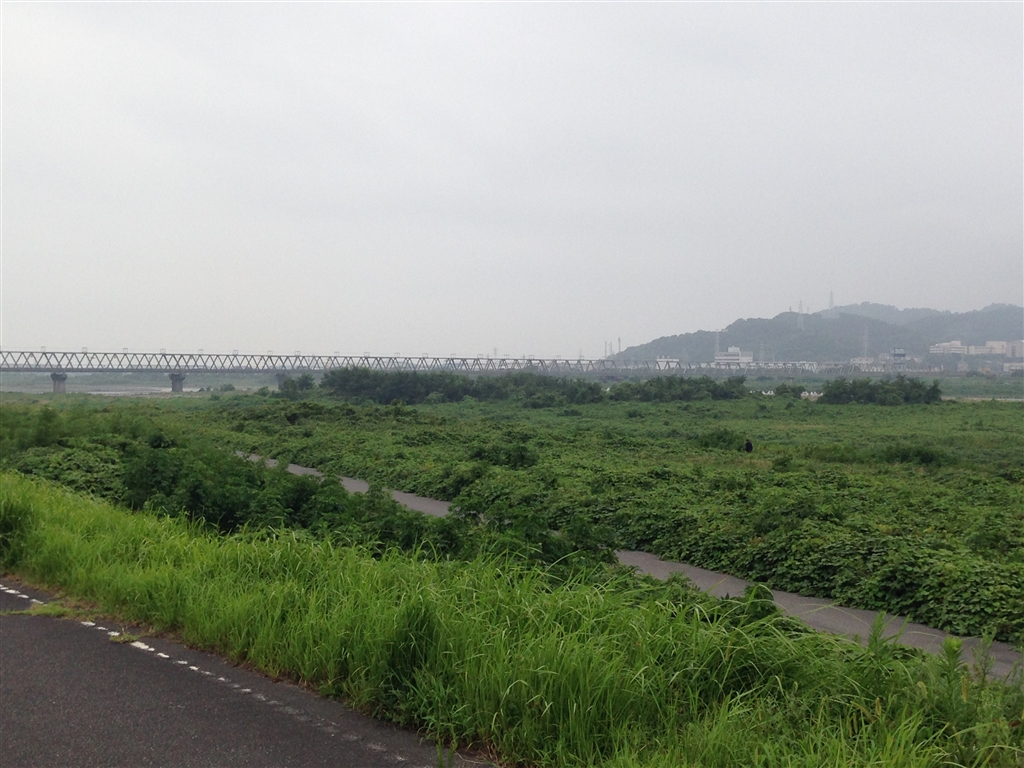 富士川土手から新幹線鉄橋を望む