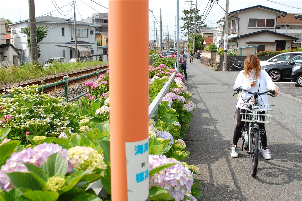 後席に子供を乗せたママさんも電車待ち
