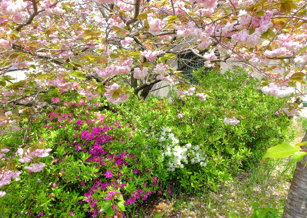 八重桜とつつじ