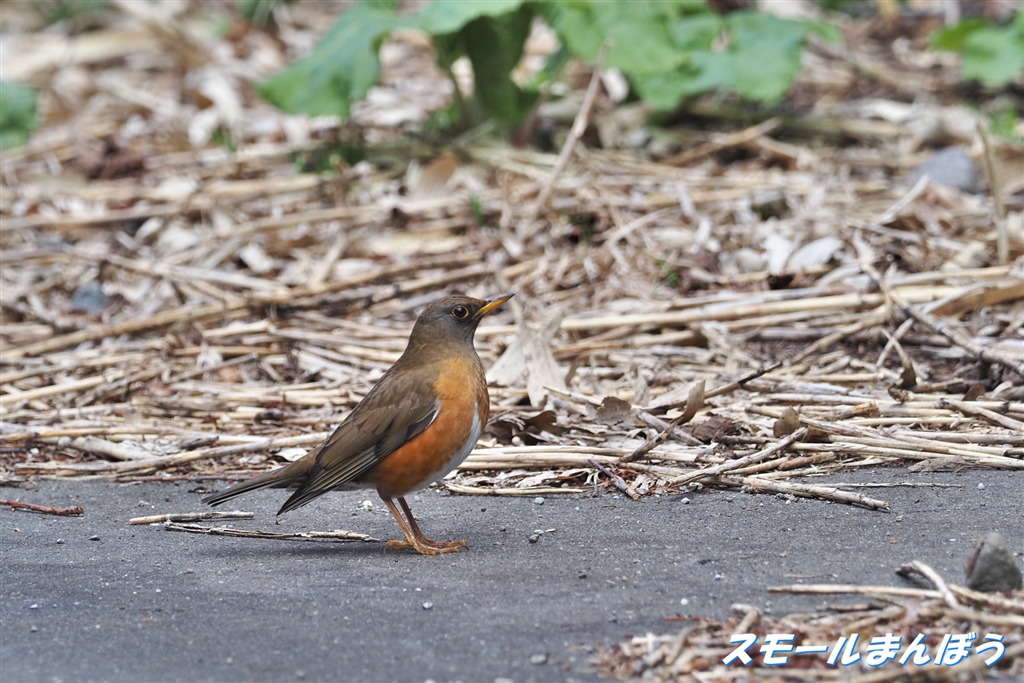 一瞬地面に降りた瞬間を撮ったアカハラ
