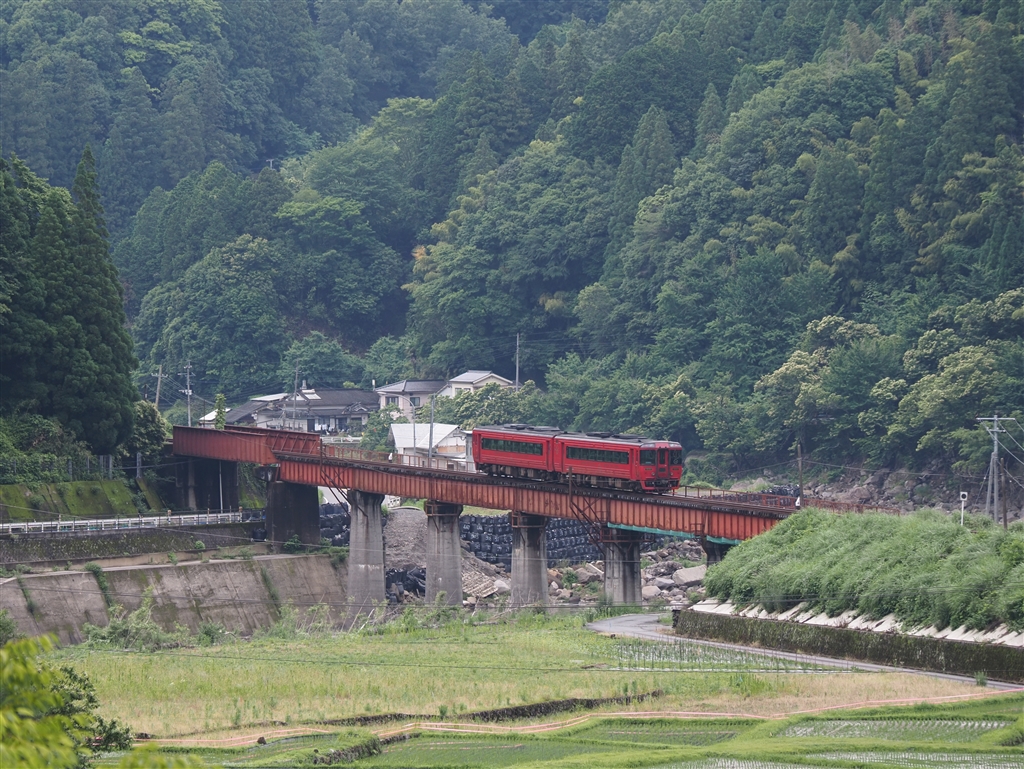 ←同じく玖珠川を渡るキハ185系特急「ゆふ」