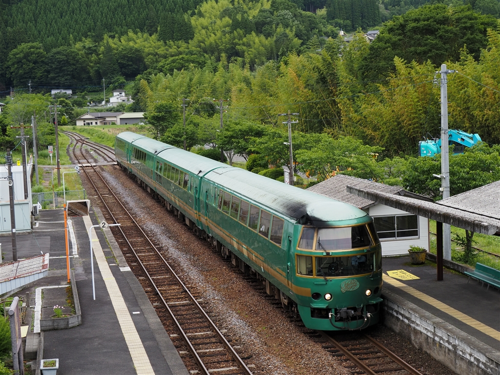 豊後中川駅を通過する 「ゆふいんの森2号」