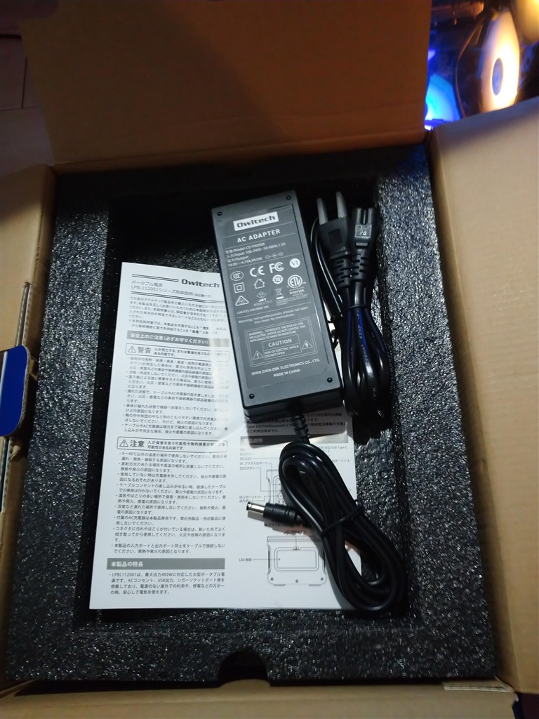 開けた。ACDCアダプタにオウルテックの表示が!