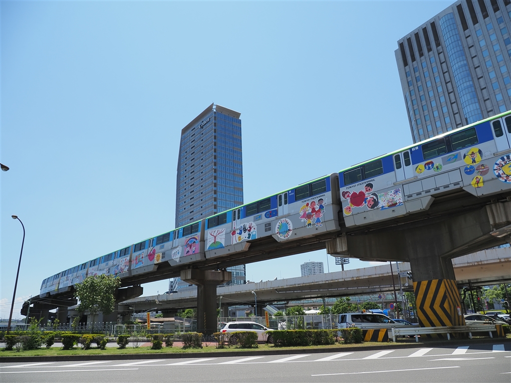 空港と都心を結ぶモノレール。 子供の絵で五輪をイメージ