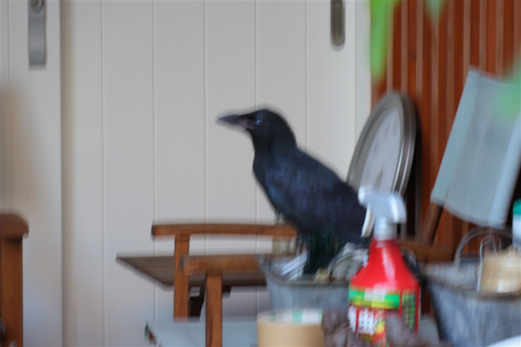 庭の一隅に迷い込んだヒナ(母鳥に威嚇されながらの腰抜け写真(^^ゞ