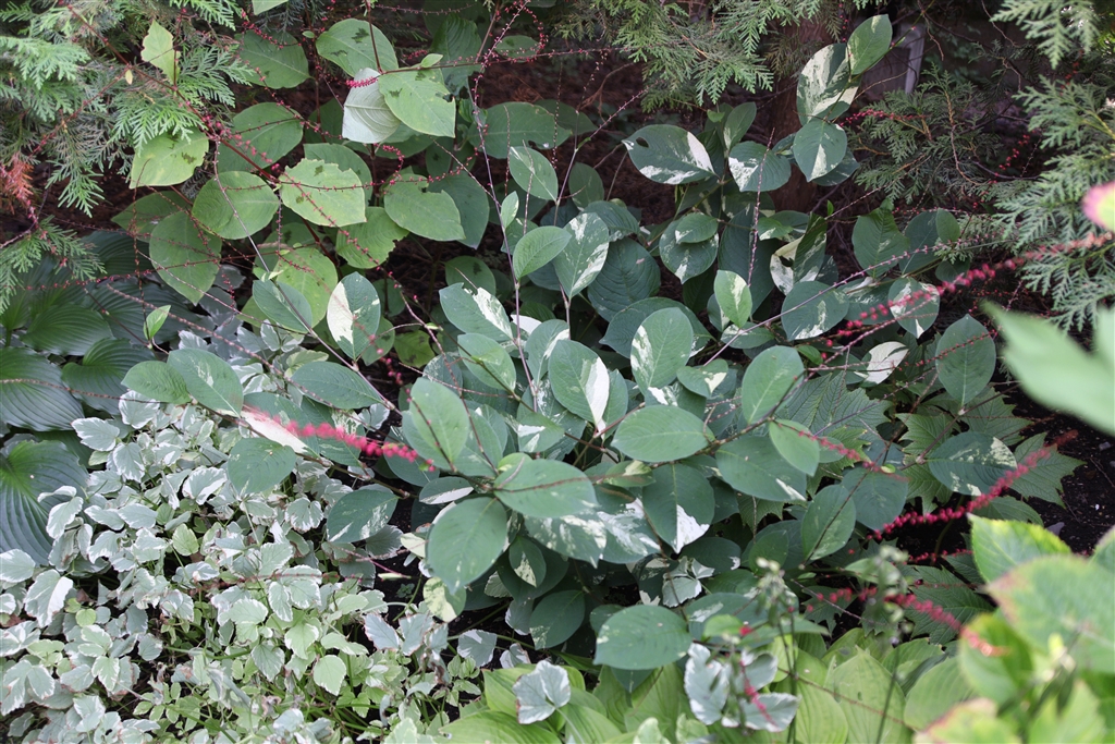 日影を明るくしてくれる、ミズヒキ、イワミツバ、ギボウシ