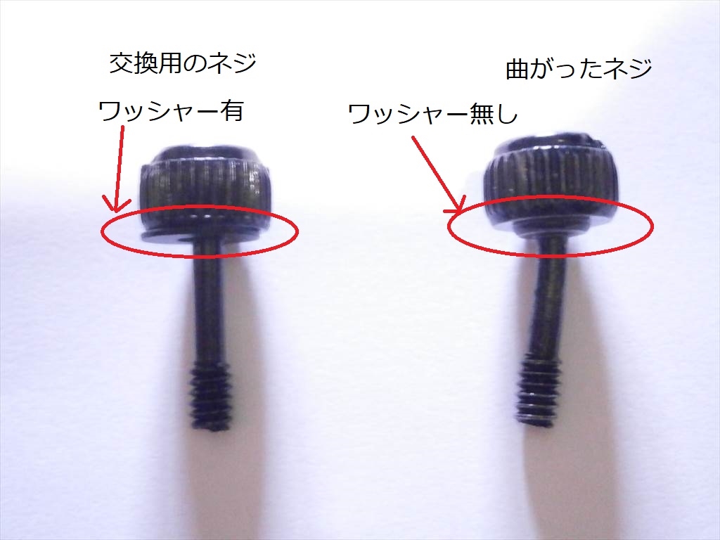 @左右カバー固定用のネジの軸が曲がっている