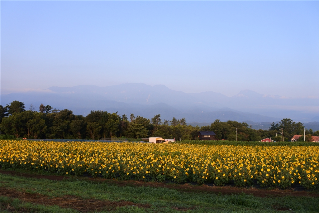 明野のひまわり畑 1画だけ咲いていました あと2、3週間くらいかかりそう