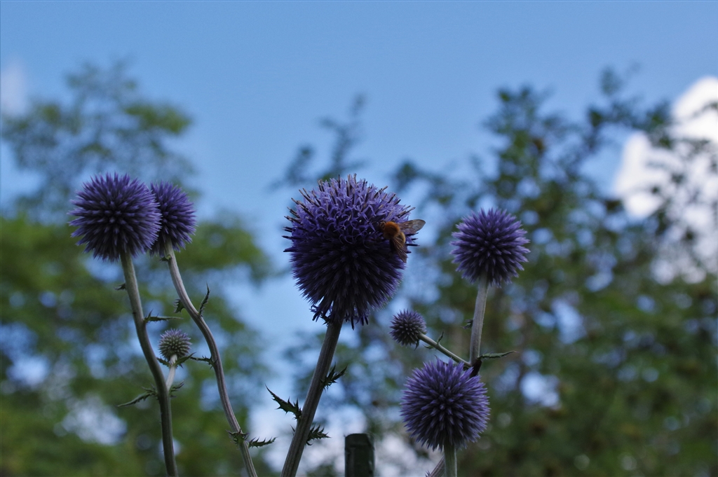 ルリタマアザミ。少し逆光。