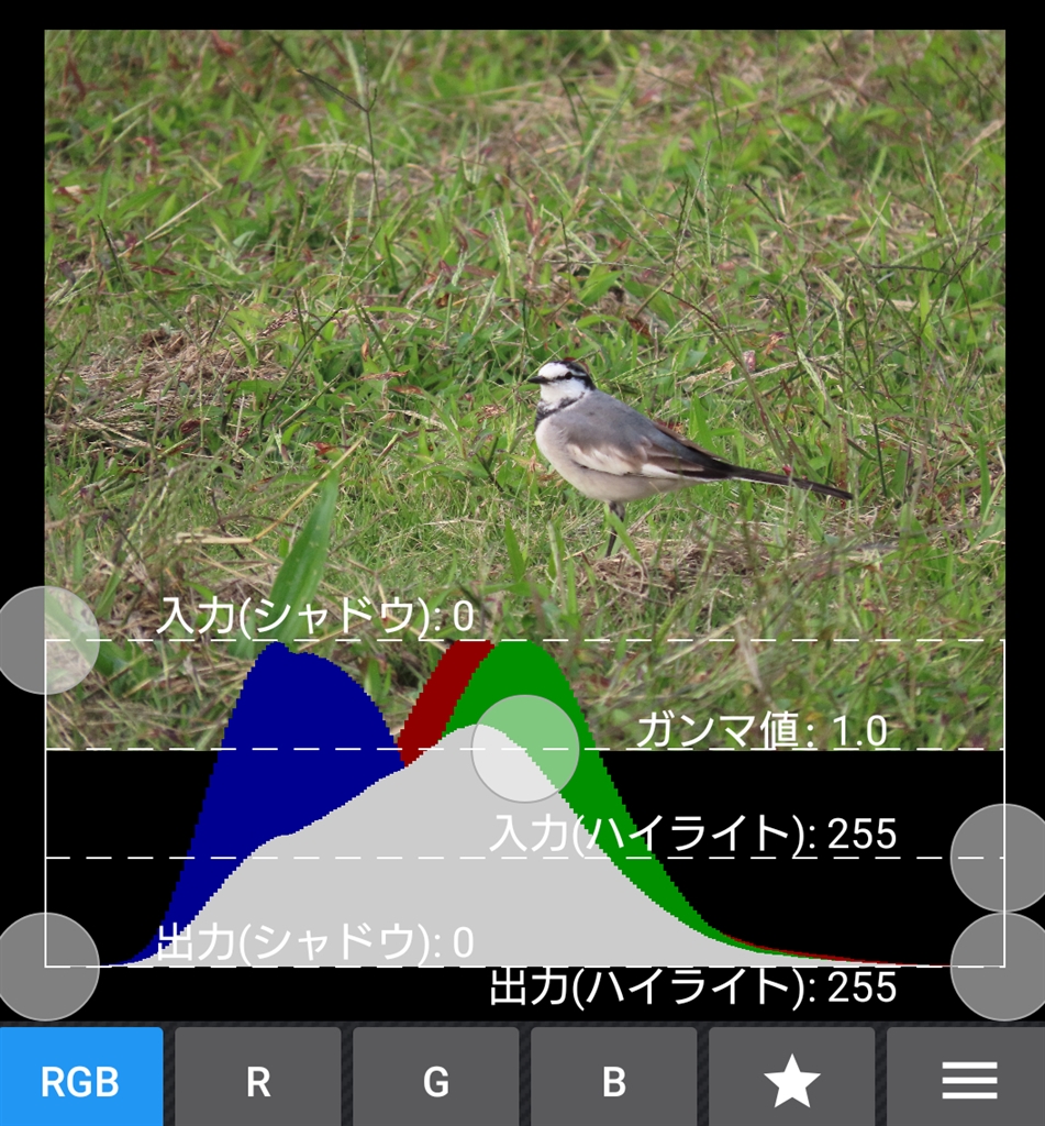 芝部分のみ露出 ※ヒストグラムの各右側ピーク位置に注目