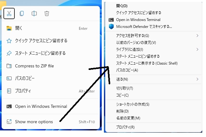 ファイルフォルダの右クリックの動作