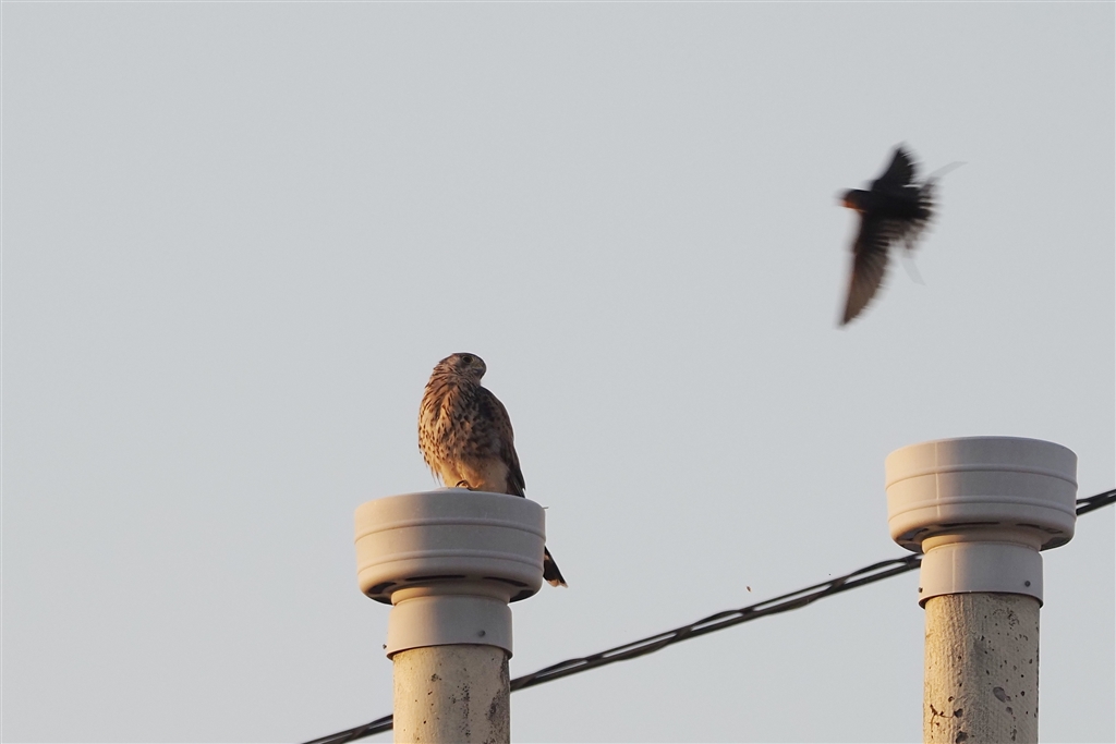 部屋のバルコニーから、地元のチョウゲンボウ