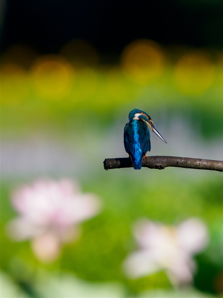 ハス+ブルーサルビア+ひまわりバック