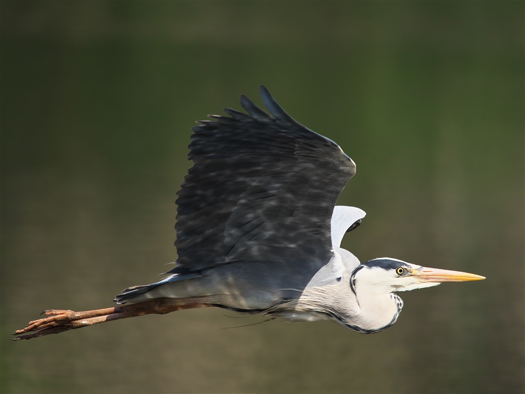 水面の反射光を受けながら低空飛行