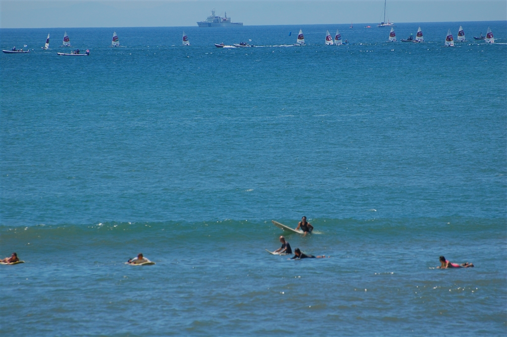 サーファー達の後ろで五輪してました(七里ヶ浜にて)