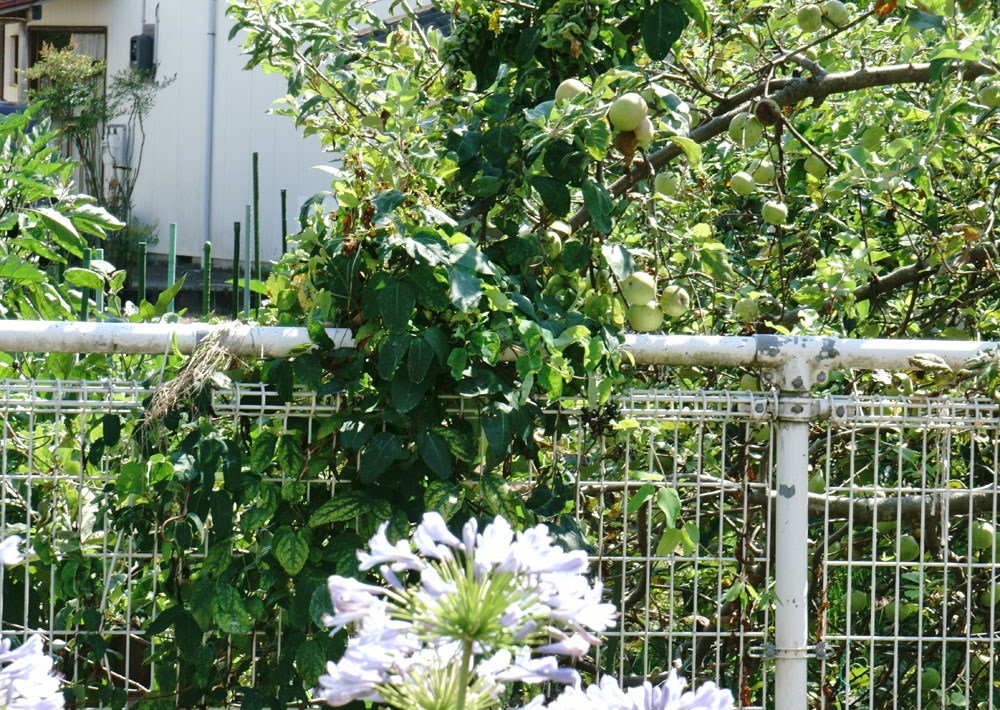 リンゴの実 手前は我家の庭