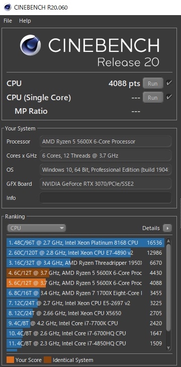 5600X Cinebench R20マルチ測定 4088