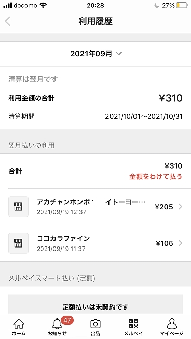 メルペイクーポン活用で5円の負担
