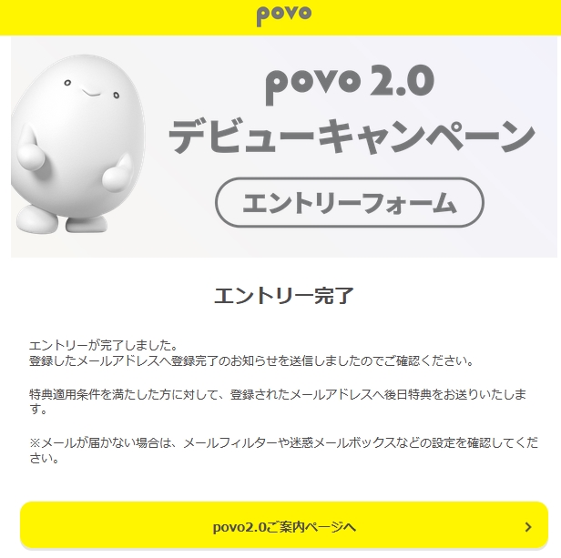 povo2.0 デビューキャンペーンエントリー
