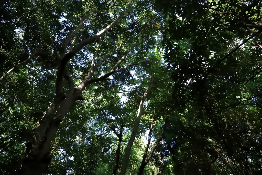 ちばらぎの常緑照葉樹の原生林を再現した生態園の森は真っ暗