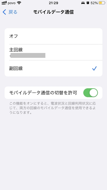 モバイルデータ通信の切替を許可