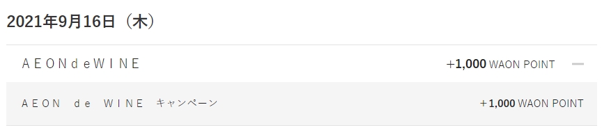 AEON de WINEから1,000P付与