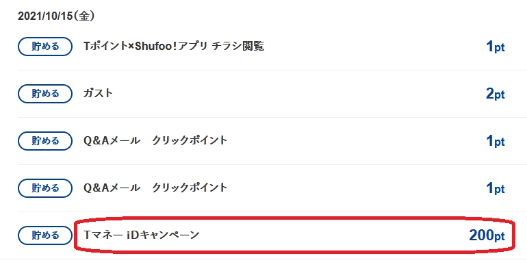 TマネーiDキャンペーン200P獲得