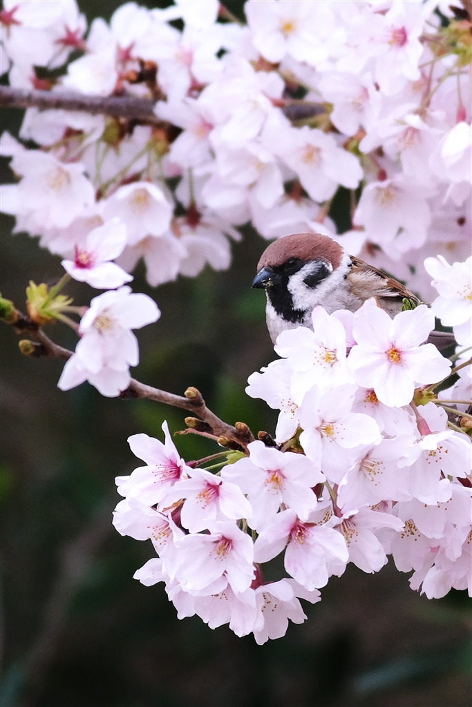 桜とスズメ