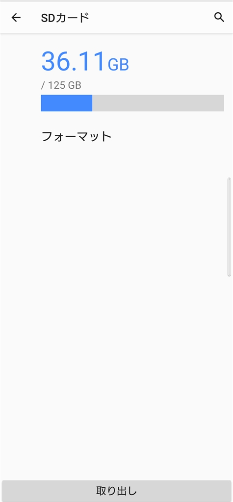 ストレージの設定→SDカード 画面(Android11)