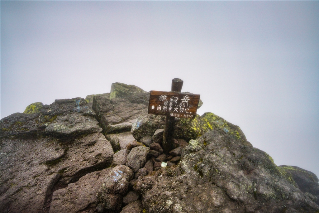 羅臼岳の山頂。ガスで何も見えない