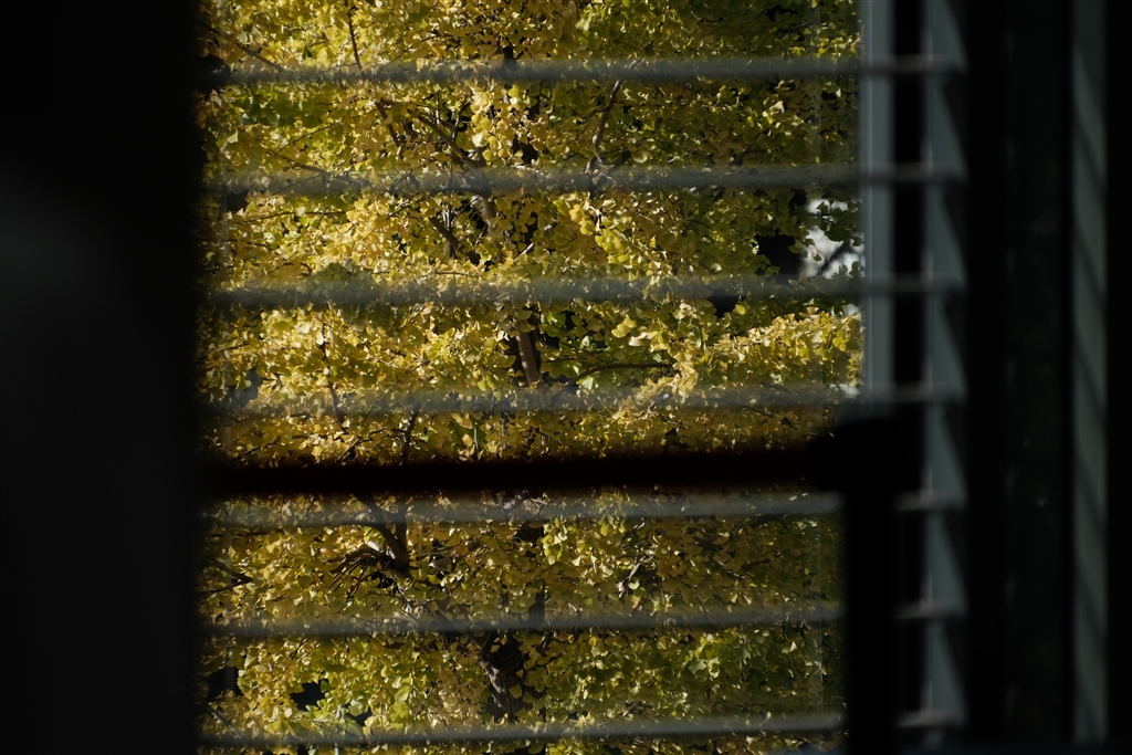 窓越しの街路樹