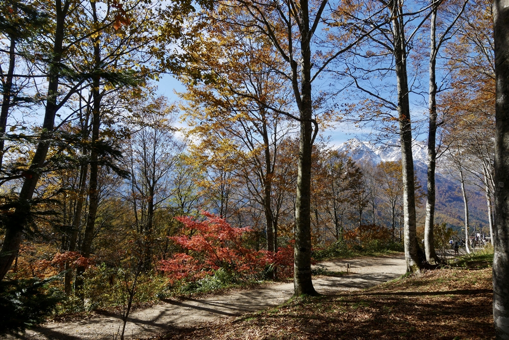 G8での撮影。岩岳の紅葉と冠雪した白馬三山が美しいです。