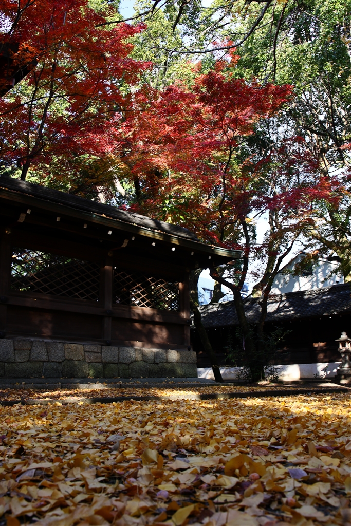 御霊神社にはイチョウの絨毯が敷き詰められている