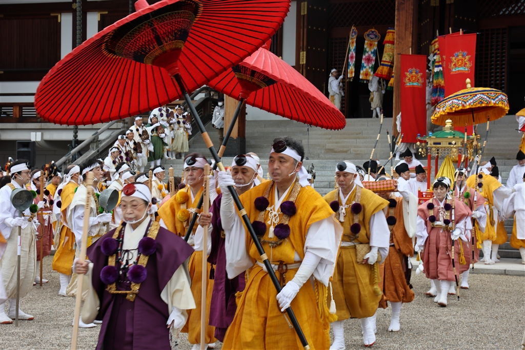 本殿前から山伏たちは行列して結界前広場に向かう
