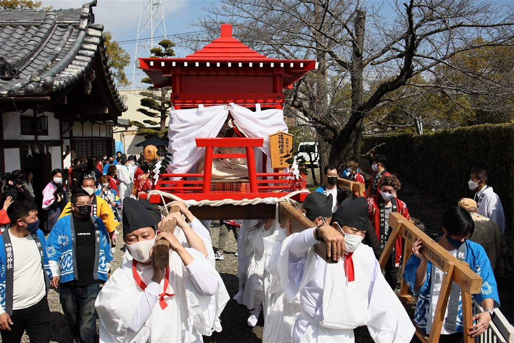 衆人の目はこの神輿よりも後ろにある光景に行く